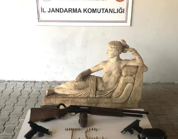 Bursa İl Jandarma Komutanlığı ekipleri, kaçak kazı ihbarı üzerine Fevziye Mahallesi’ndeki bir eve operasyon düzenlendi. Evde yapılan aramada, mahallede yapılan kazıda bulunduğu tespit edilen heykel ile 2 tabanca ve 1 tüfek ele geçirildi. Roma Dönemi’ne ait değerlendirilen 3 bin yıllık heykel, teslim edilmek üzere Bursa Müzeler Şube Müdürlüğü’ne götürüldü. Evde bulunan A.U., İ.M. ve A.Ç. gözaltına alındı.