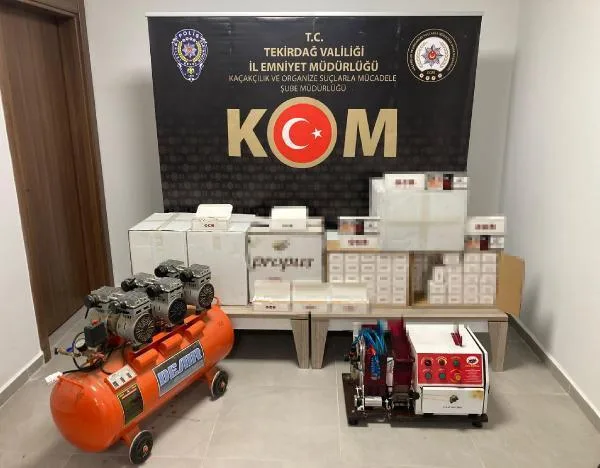 İl Emniyet Müdürlüğü Kaçakçılık ve Organize Suçlarla Mücadele Şube Müdürlüğü ekipledi, tütün ve tütün ürünleri kaçakçılığının önlenmesi ve deşifte edilmesine yönelik çalışma kapsamında Şarköy ilçesinde 2 ev ve bir iş yerinde arama yaptı. Aramalarda, 150 kilo açık kıyılmış tütün, 7 bin 400 içi dolu satışa hazır makaron, 50 bin bandrolsüz boş makaron, 2 bin 600 bandrollü boş makaron, elektrikli sigara doldurma makinesi ve kompresör ele geçirildi. Gözaltına alınan 1 şüpheliyle ilgili soruşturma sürüyor. (DHA)