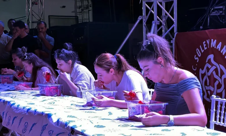 Abdullah YALÇIN/ TEKİRDAĞ, (DHA)- TEKİRDAĞ’da Süleymanpaşa Belediyesi tarafından düzenlenen Ferhadanlı Karpuz Şenliği’nde karpuz yeme yarışması renkli görüntülere sahne oldu.