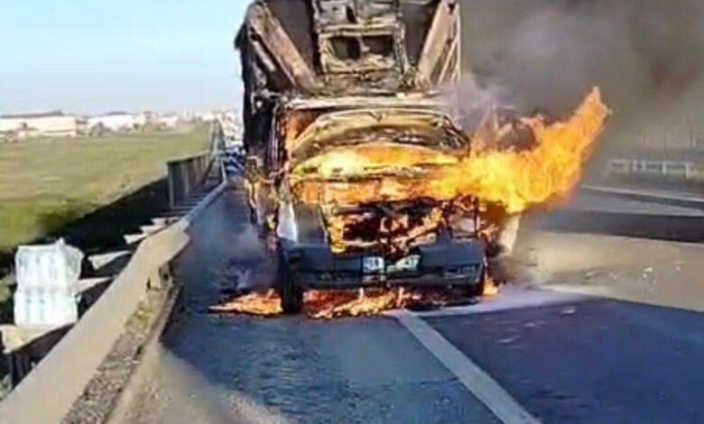Seyir halindeki kamyonet alev alıp yandı