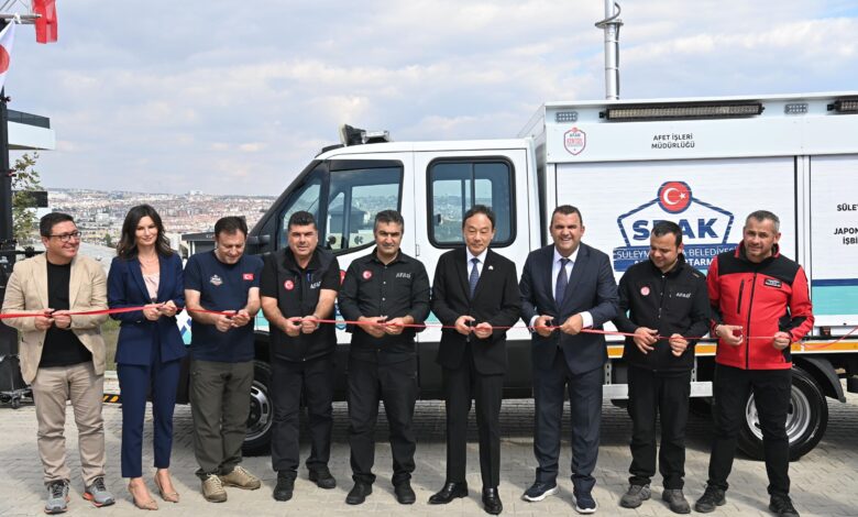 Süleymanpaşa Belediyesi araç filosuna katılan ve arama kurtarma ekipmanları ile elektronik haberleşme teçhizatını taşıyacak olan taşıt için Afet İşleri Müdürlüğü hizmet binasında teslim töreni düzenlendi. Süleymanpaşa Belediye Başkanı Volkan Nallar’ın ev sahipliğinde düzenlenen törende Japonya Büyükelçisi Katsumata Takahiko ve beraberindeki heyet hazır bulunurken, ayrıca Süleymanpaşa Kent Konseyi Başkanı Hülya Çetin, Tekirdağ İl Afet ve Acil Durum (AFAD) Müdürü Taha Yasin Çekiç, belediye başkan yardımcıları, ilgili birim müdürleri ve basın mensupları da törene ilgi gösterdi. Başkan Nallar, tören öncesinde Büyükelçi Takahiko’yu Tarihi Belediye Binasında misafir etti.