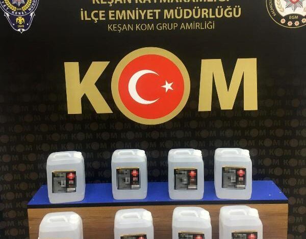 Ünsal YÜCEL/KEŞAN(Edirne),(DHA)-EDİRNE’nin Keşan ilçesinde şüphe üzerine durdurulan bir araçta 40 litre etil alkol ele geçirildi.