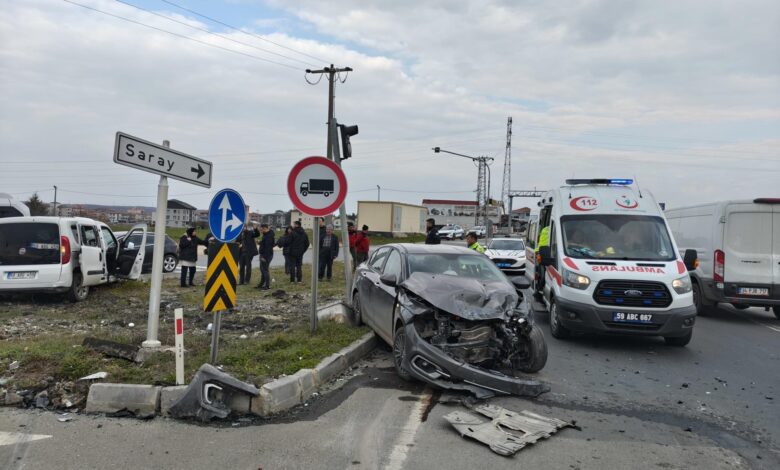 Kaza, saat 16.00 sıralarında Saray’ın Çukuryurt Mahallesi Kavşağı’nda meydana geldi. A.A.’nın kullandığı 22 UA 550 plakalı otomobil ile S.Y. yönetimindeki 59 ABG 459 plakalı hafif ticari araç kavşakta çarpıştı. Kazada sürücüler A.A. ile S.Y. yaralandı. İhbarla kaza yerine polis ve sağlık ekipleri sevk edildi. Yaralılar, Saray Devlet Hastanesi’ne kaldırılarak tedavi altına alındı. Polisin kazayla ilgili incelemesi sürüyor. (DAH)