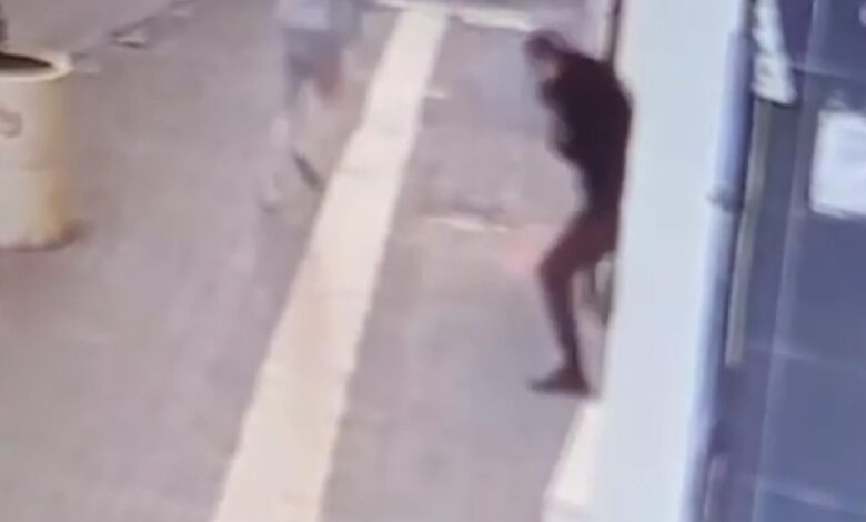 Saldırı anı ise çevredeki iş yerinin güvenlik kamerasına yansıdı. (DHA)