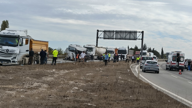 Kaza, akşam saatlerinde Saray ilçesi Bağlar mevkisinde meydana geldi. Bağlar mevkisine seyir halinde olan Mehmet N. yönetimindeki 59 ANT 682 plakalı otomobil ile Haydar K. idaresindeki 59 AEN 212 plakalı işçi servisi sürücüleri arasında iddiaya göre yol verme tartışması çıktı. Tartışma sorasında sürücüler araçlarıyla seyir halindeyken birbirlerini sıkıştırdı. Bu sırada savrulan işçi servisi karşı yöne geçerek Fethi İ. yönetimindeki 06 EZS 136 plakalı TIR ile çarpıştı. Kazada 3 aracın sürücüsü de yaralandı.