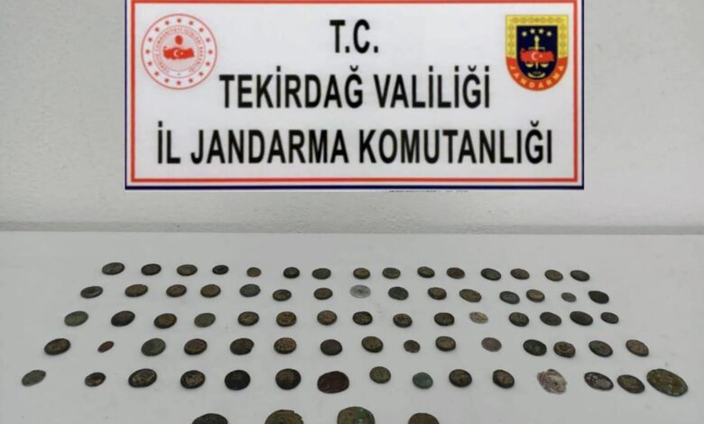 Tekirdağ İl Jandarma Komutanlığı ve Çorlu İlçe Jandarma Komutanlığına bağlı Jandarma Suç Araştırma Timleri (JASAT) ekipleri ilçede Önerler mahallesinde durumlarından şüphelendikleri B.İ.,O.B., ve S.K.’yi durdurdu. Şüphelilerin yapılan üst aramalarında tarihi eser olduğu değerlendirilen 79 sikke ele geçirildi. Sikkelere el konulurken 3 şüpheli gözaltına alındı. Olayla ilgili olarak başlatılan soruşturma sürüyor.(DHA)