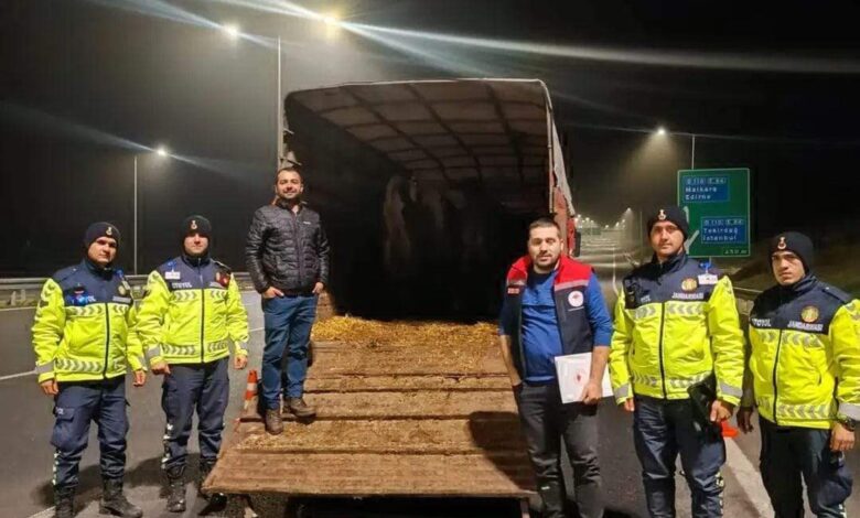 Malkara İlçe Jandarma Komutanlığı ekipleri otoyol kontrol noktasında hayvan taşınan kamyonette incelemede bulundu. Kamyonetteki hayvanların Edirne’den veteriner raporu alınmaksızın taşındığının belirlenmesi üzerine haber verilen İlçe Tarım ve Orman Müdürlüğü veterinerleri de bölgeye gitti. Veterinerlerin kontrolünde hayvanların mevzuata aykırı şekilde sevk edildiğini belirledi ve hayvanları alan kişiye 102, satan kişiye 32 bin lira olmak üzere toplam 134 bin lira ceza uygulandı. (Haber Merkezi)
