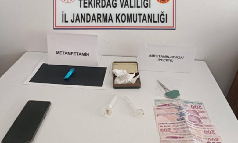 Tekirdağ İl Jandarma Komutanlığı tarafından 14-21 Temmuz tarihleri arasında, Süleymanpaşa ilçesine bağlı Aydoğdu ve Zafer Mahalleleri’nde iki adreste, Kapaklı ilçesi Mimarsinan Mahallesi’nde ve Çerkezköy ilçesi Veliköy Mahallesinde şüphelilerin üzerinde, Hayrabolu ilçesindeyse bir araç ve iş yerinde arama yapıldı. Aramalarda; 8 gram metamfetamin, peçeteye emdirilmiş 2 bonzai, 2 tabanca, 3 av tüfeği, 2 kuru sıkı tabanca, 1 kasatura, 2 bin 170 TL suçtan elde edildiği değerlendirilen para, 1 cep telefonu, 1 sikke, toplam 38 bin 848 doldurulmuş makaron ve 2 kilo açık tütün ele geçirildi.(DHA)