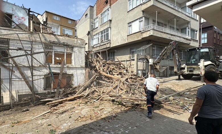 Süleymanpaşa ilçesi Ertuğrul Mahallesi Orta Çeşme Sokak’ta bulunan, uzun süredir kullanılmayan binanın bir bölümü yaklaşık iki hafta önce yanındaki 5 ailenin yaşadığı apartmana dayanarak çökme tehlikesi oluşturdu. İhbar üzerine bölgeye itfaiye, polis ve AFAD ekipleri sevk edildi. Güvenlik amacıyla apartman tamamen tahliye edilirken, bina mühürlenerek çevresi emniyet şeridiyle kapatıldı. Yetkililerden alınan onay sonrası başlatılan yıkım çalışmaları kapsamında bina kontrollü şekilde yıkıldı. Molozların kaldırılması için belediye ekipleri tarafından çalışma başlatıldı. (DHA)