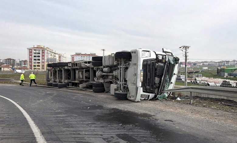 Kaza, Ergene’nin çevre yolu üzerinde meydana geldi. Orhan Tomurcuk’un kullandığı 59 AGR 416 plakalı TIR, virajda sürücüsünün kontrolü yitirmesi üzerine devrilip yan yattı. Kazayı görenlerin ihbarıyla bölgeye polis, sağlık ve itfaiye ekipleri sevk edildi. Yaralanan sürücüsü Tomurcuk, Çorlu Devlet Hastanesi’ne kaldırılarak tedavi altına alındı. Kazayla ilgili inceleme başlatıldı. (Haber Merkezi)