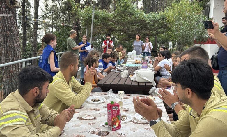 Tekirdağ Gençlik Merkezi öğrencileri, orman yangınlarında görev alan Orman İşletme Müdürlüğü personeline teşekkür ziyaretinde bulundu. Orman İşletme Müdürlüğü’nün Kumbağ Mahallesi’ndeki merkezindeki kahvaltıda orman işçileriyle bir araya gelen öğrenciler, yazdıkları teşekkür mektuplarını okudu. Öğrencilerden Aybüke Hüma Canik, “Ormanlarımızın yanmaması için çok gayret gösterdiniz. Hiçbir zaman azminizi kaybetmediniz ve gönülden çalıştınız. Zor ve tehlikeli bir görev üstleniyorsunuz. Belki sizler olmasaydınız hayvanların bir evi, bir yaşam alanı olmayacaktı. Lütfen kendinize dikkat edin, bizler hep sizin yanınızdayız” ifadelerini kullandı. Öğrencilerden Emine Nur Çömlek ise orman işçilerinin canlarını hiçe sayarak mücadele ettiğini belirterek, teşekkür etti.