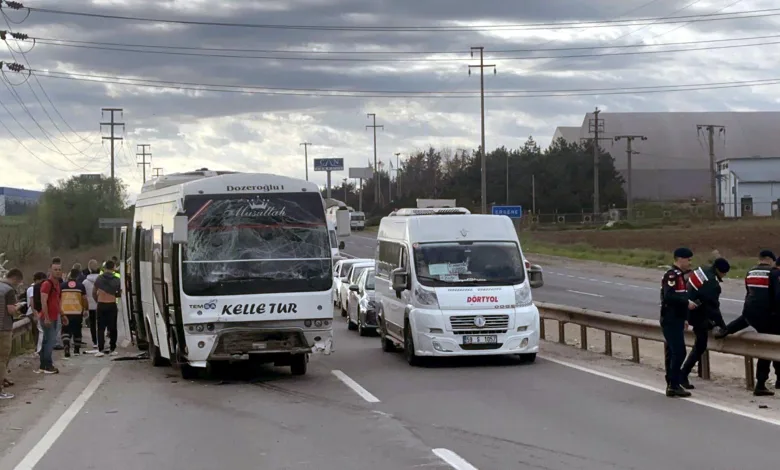 Mehmet YİRUN/TEKİRDAĞ, (DHA)- TEKİRDAĞ’ın Ergene ilçesinde, fabrika personelini taşıyan midibüsün, içinde askeri personel bulunan minibüse arkadan çarptığı kazada 5’i askeri personel, 16 kişi yaralandı.