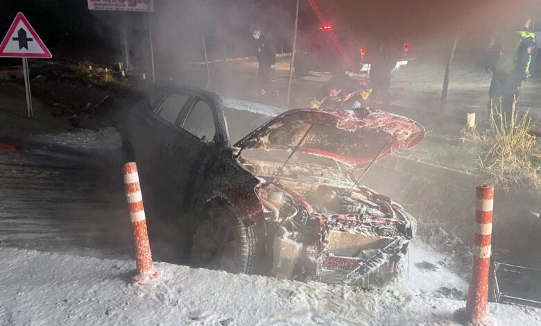 Murat YAYIN/MALKARA (Tekirdağ), (DHA)- TEKİRDAĞ’ın Malkara ilçesinde, refüje çarpıp takla atarak alev alan otomobilin sürücüsü, hayatını kaybetti. Sürücünün kimliğinin belirlenmesi için çalışma başlatıldı.