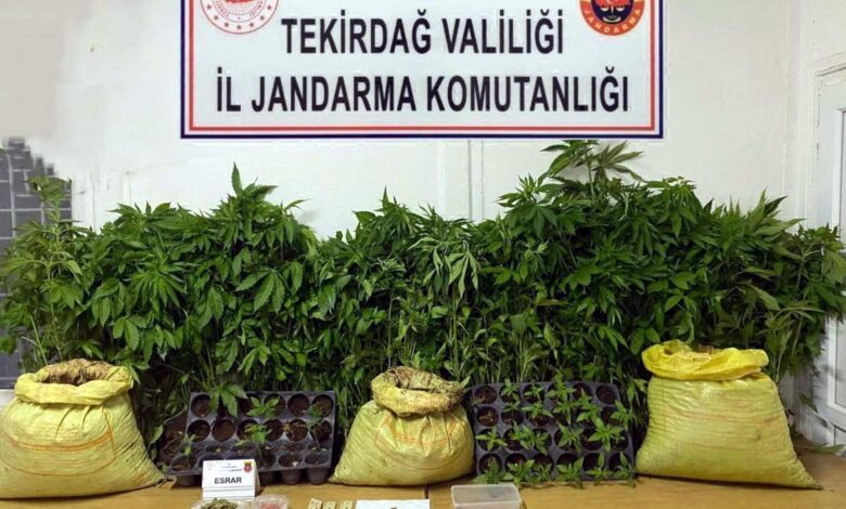 İl Jandarma Komutanlığı ekipleri, il merkezi, Çorlu, Şarköy, Çerkezköy, Kapaklı ilçelerinde düzenlediği operasyonlarda, eroin, 331 kök Hint keneviri, esrar, sentetik uyuşturucu hap, bonzai, amfetamin, hassas terazi,