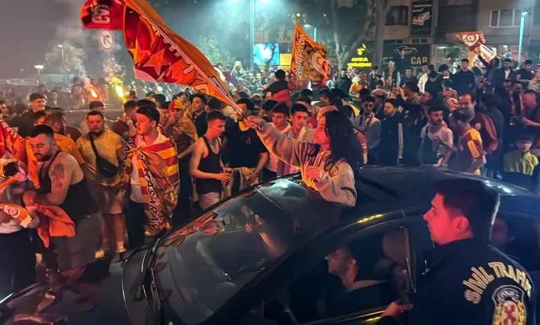 Galatasaray’ın Konyaspor’u 3-1 yenerek 24’üncü şampiyonluğunu kazanmasıyla birlikte Tekirdağ’da sarı-kırmızılı taraftarlar Süleymanpaşa ilçesindeki Cumhuriyet Meydanı’nda toplandı. Ellerinde sarı-kırmızı bayraklarla birlikte meşaleler yakan taraftarlar, marşlar söyledi. Davul-zurna eşliğinde şampiyonluğu kutlayan Galatasaray taraftarları araçlarıyla kent merkezinde tur attı.