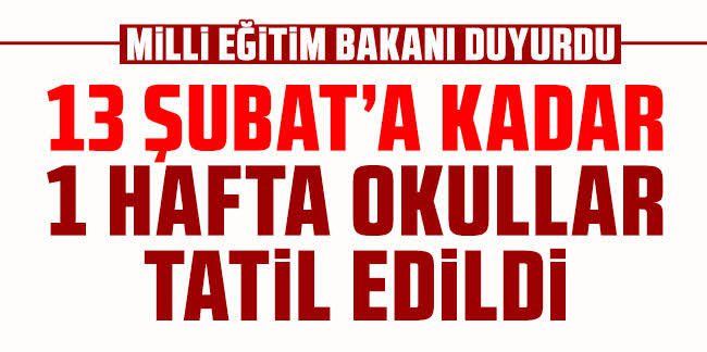 Özer, “Tüm Türkiye’de şu andaki iklim şartlarını göz önüne alarak ve deprem bölgelerindeki çalışmaların çok daha suhuletle olması bağlamında sadece deprem bölgesindeki illerde değil; çevresindeki illerin de suhuletli bir şekilde süreçleri yönetmesi için bugünden itibaren tüm Türkiye’de tüm okullarımızı 13 Şubat’a kadar bir hafta tatil ediyoruz.