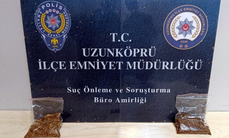 Uzunköprü İlçe Emniyet Müdürlüğü’ne bağlı Suç Önleme ve Soruşturma Büro Amirliği tarafından yapılan çalışmalar kapsamında, Atatürk Mahallesi’ndeki otogar karşısında boş arazide D.Ş. durduruldu. D.Ş.’nin üzerinde yapılan aramada 11 gram amfetamin ele geçirildi. Olayla ilgili gözaltına alınan D.Ş.’nin hakkında işlem başlatıldı.(DHA)
