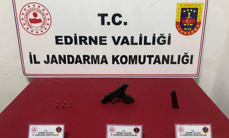 Ünsal YÜCEL/EDİRNE, (DHA)-EDİRNE’de şüphe üzerine durdurulan bir kişinin üzerinde 1 ruhsatsız tabanca ve 6 mermi ele geçirildi.