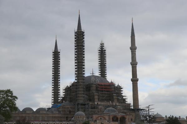 Edirne’de Mimar Sinan’ın ‘Ustalık eserim’ dediği yıllık ziyaretçi sayısı 1 milyonu geçen, UNESCO Dünya Kültür Mirası Listesi’ndeki Selimiye Camisi’nde, 25 Kasım 2021’de başlanan restorasyon çalışmaları devam ediyor. Edirne Valisi Hüseyin Kürşat Kırbıyık, tarihi yapıda iç ve dış mekandaki çalışmalar kapsamında 18 aydır sürdürülen restorasyonda yıl sonu itibarıyla Selimiye’nin kubbesinin görünür hale geleceğini belirtti. Vali Kırbıyık, Edirne’ye göreve başladığı günden beri Selimiye Camisi’nin kubbesini göremediğini belirterek, “Edirne’ye ilk geldiğimde bir cuma günüydü. O gün restorasyon çalışmaları nedeniyle kubbeleri göremedik. Bir üzüntü oldu bende. Edirne’ye vali olduk ama bakalım bu Selimiye’nin kubbesini görmek bize ne zaman nasip olacak dedik. Sonra bunun da bir nimet olduğunu anladık. Şimdi ezan okunurken iskeleye bakınca gerek içeriden gerek dışarıdan kurulan iskelenin birçok nimet olduğunu fark ettik. Şu kubbeye gelen misafirlerimizle birlikte, belki 50 kezden fazla çıktım. Şehrin bütün silüetini hem misafirlerimize gösterdik hem de kendimiz gördük. Dışarıdaki iskeleyi kullanarak alem noktasına kadar çıkmak nasip oldu” dedi.