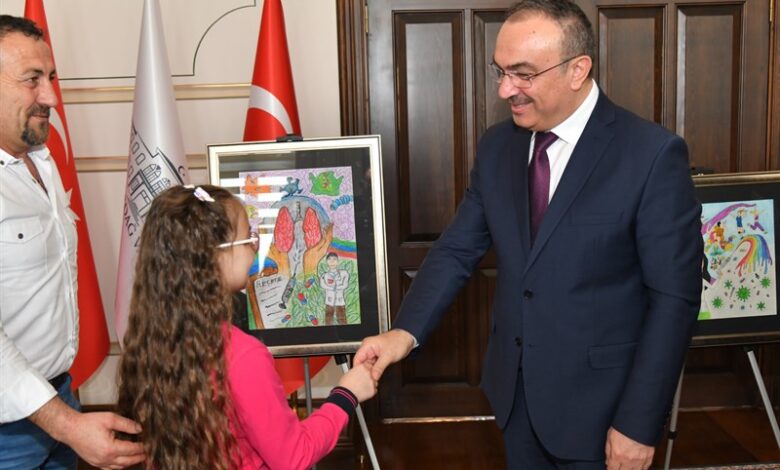 Tekirdağ Valisi Recep Soytürk, Halk Sağlığı Hizmetleri Başkanlığı tarafından “78. Verem Eğitimi ve Propaganda Haftası” münasebeti ile düzenlenen resim yarışmasında dereceye giren öğrencileri makamında ağırladı.