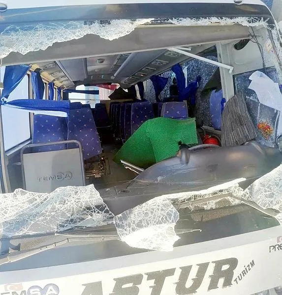 Kaza, Ergene, Lüleburgaz ilçesi D-100 yolu yakınlarında meydana geldi. Buzlanma nedeniyle sürücüsünün kontrolünden çıkan servis midibüsü, yan yattı.
