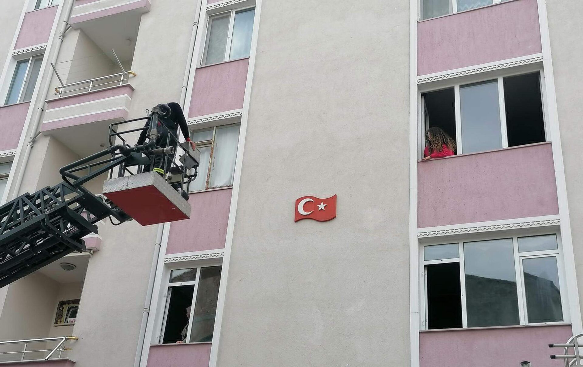 İtfaiye ekipleri yangına kısa sürede müdahale edip, dairelerinde mahsur kalanları merdivenle aşağıya indirdi.