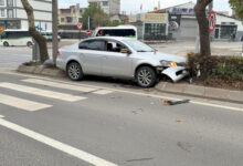 Alkollü sürücü, yaya geçidinin olduğu noktada otomobiliyle refüje çarptı