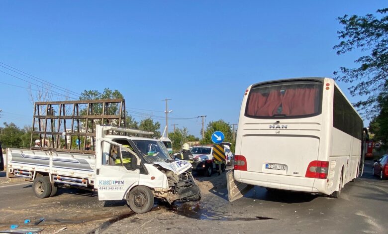 Mehmetcan ARSLAN/ÇORLU(Tekirdağ), (DHA)- TEKİRDAĞ’ın Çorlu ilçesinde yolcu otobüsü ile kamyonetin çarpıştığı kazada 2 kişi yaralandı.