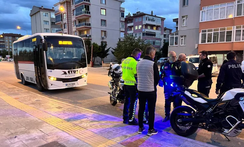 Edirne’de, şehir içi ulaşımı sağlayan Edirne Toplu Ulaşım Sistemi’ne (ETUS) bağlı 22 M 0005 plakalı midibüste bulunan yolcular, şoförün alkollü olduğundan şüphelenmeleri üzerine durumu 112 Acil Çağrı Merkezi’ne bildirdi. Polis ekipleri H.K.’nın kullandığı midibüsü Fatih Mahallesi İbrahim Zagra Caddesi üzerinde durdurdu. Yapılan kontrolde sürücü H.K.’nın 1.45 promil alkollü olduğu belirlendi. Alkollü araç kullanmaktan ehliyetine el konulan sürücüye çeşitli maddelerden 16 bin 4 lira ceza uygulanıp, ifadesi alınmak üzere Cumhuriyet Polis Merkezi’ne götürüldü.